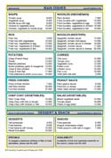 We offer Indonesian food like soups, fried rice, noodles, chicken, curries, peanut sauce, vegetables, tofu and salads. Western food are spaghetti, french fries, roesti and fried potatoes. As desserts we offer fruit salad, fried bananas or pineapple with honey and fried peanuts.